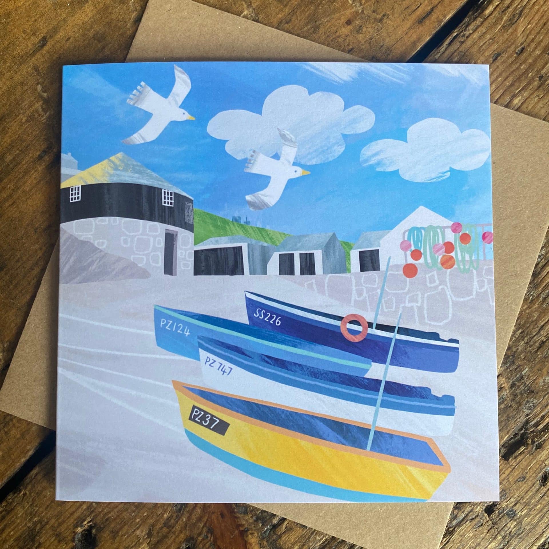 Designed in Newlyn, Cornwall by artist Gill Wild using digital illustrations or acrylic paintings.